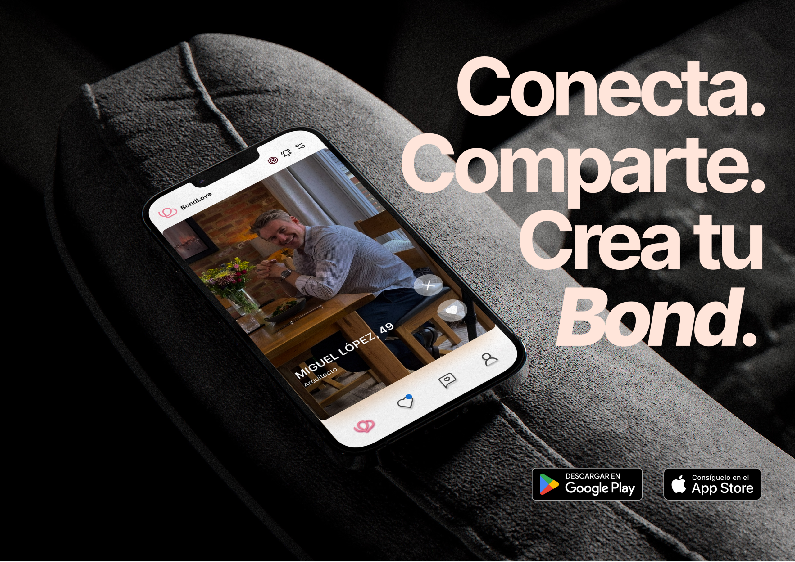 Bond Love busca crear una experiencia digital que facilite el encuentro entre personas y fomente conexiones significativas. A través del diseño de interfaz, la identidad visual y la interacción del usuario, la aplicación propone una navegación sencilla y atractiva que invita a descubrir nuevas relaciones de forma natural.